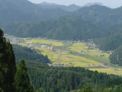 池田町は福井県の東南部に位置し、岐阜県と接する典型的な中山間地域です。町の中心を清流足羽川が流れ、日本の滝百選に選ばれた「龍双ヶ滝」、残したい自然百選に選ばれた「冠山」(1286m)などがあり、豊かな農山村風景が広がる町です。清き水、きれいな空気、肥沃な土、豊かな文化を守り磨き、「相互扶助」の精神を基に、循環型農業や環境向上への取り組みを展開しています。