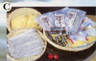 Cセット(越前そば、冷やし中華) 各越前そば=特製つゆ付き 各冷し中華=りんご蜂蜜スープ付き |