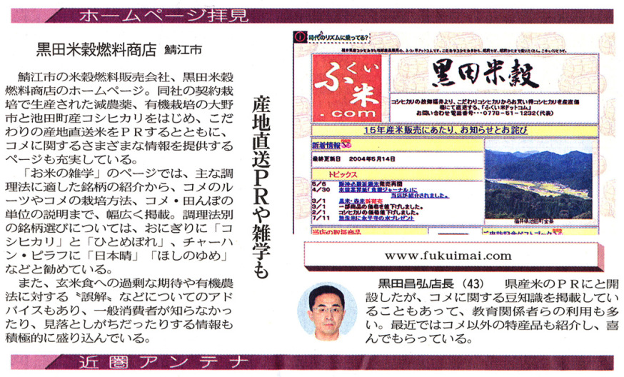 コシヒカリと地域産品のふくい米ドットコムホーム>店舗紹介>当店紹介記事(日刊県民福井)