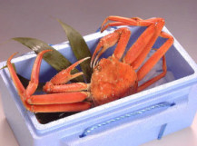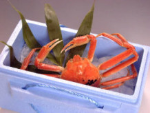 | どうしておいしい越前がに 冬の日本海の味覚である越前がに。正式な名前はズワイガニ。そう、あの松葉がにや、オフォーツクのあのかにと同じです。では、どうして越前がには、値段も高いけどおいしいのとよく聞かれます。福井はもともと、京都や大阪にも近く、古くから越前かにが関西に出荷され、有名であったことと、実はそのほかに大きな理由があるのです。それは、山陰や北海道では、漁船も大きく、一度漁に出ると何日も帰ってこないのです。しかし、この三国から越前海岸にかけての漁船はどれも小さく、とても沖泊まり出来ないため、獲れたその日に、冷凍されることなく、漁港に水揚げされるのです。だから他の産地と比べ、とても新鮮であることから、全国的に有名になったのです。しかし、有名になればなるほど偽者がふえ、数年前より、三国、越前、河野、敦賀の各漁協が管理する漁港に水揚げされたオスのズワイガニには、黄色いタックが付けられるようになりました。言わば、本物の証ですね。また、水揚げされた越前がには、セリにかけられ、各問屋に行き、ゆでられるのですが、このときの茹で方、味は各店それぞれ企業秘密であり、微妙に各店かにの味が違います。 |